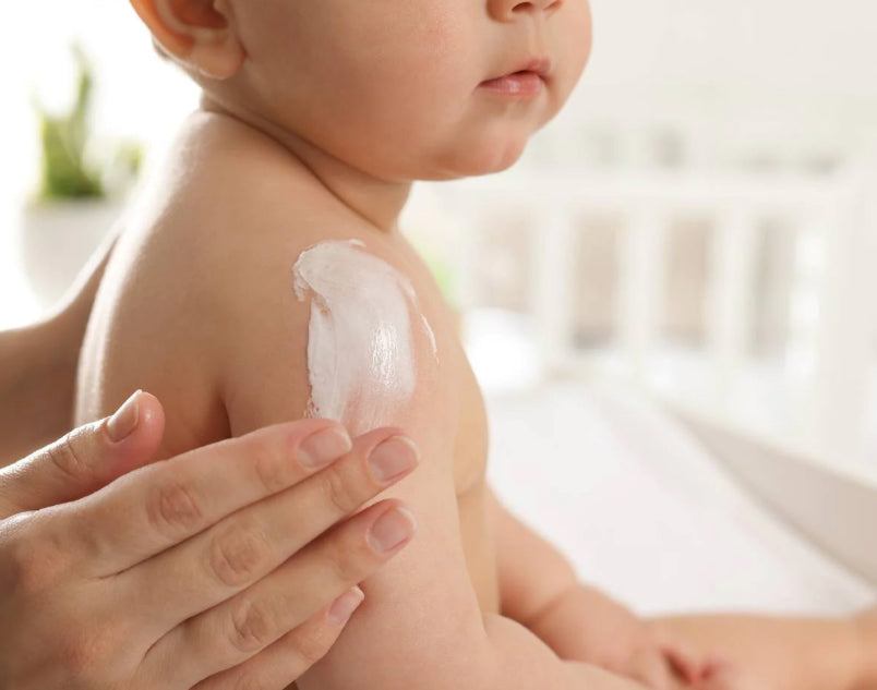 Organic Unrefined Shea Butter, Sunflower oil, Borage oil, Chamomile oil, Vitamin E oil, Arrowroot Powder, Colloidal Oatmeal, Lavender essential oil
