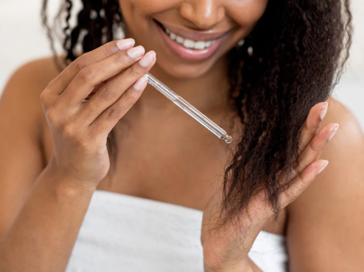 Our amazing Healthy Hair Elixir is specially crafted with a blend of 22 all-natural oils and powders, infused with essential oils to stimulate hair follicles to promote growth, to penetrate hair to improve moisture retention, to prevent breakage, reduce frizz and to relieve dry, flaky and itchy scalp.
