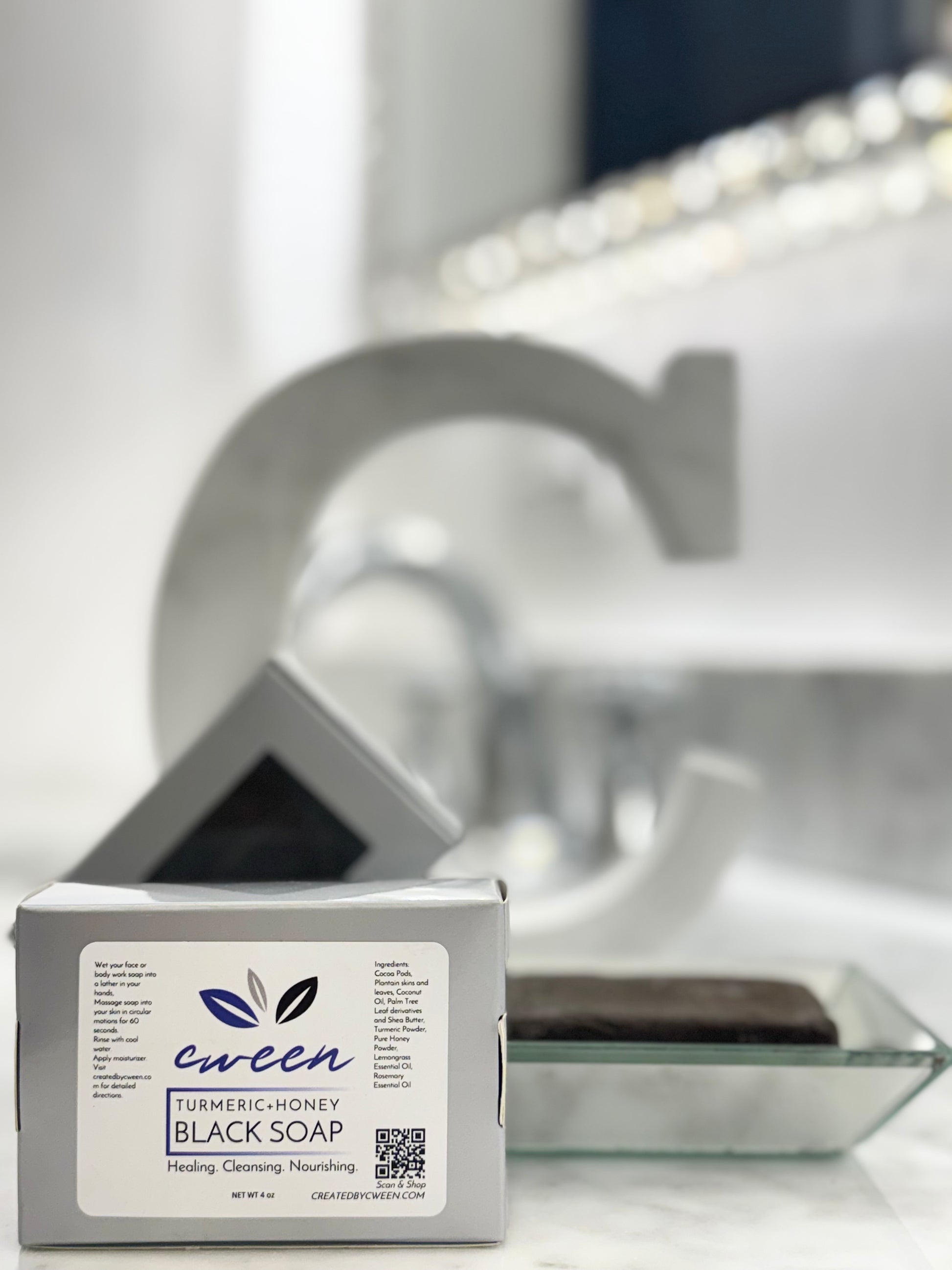 Turmeric + Honey African Black Soap is featured in our Cween, Clear, Calm, and Clean Essentials set